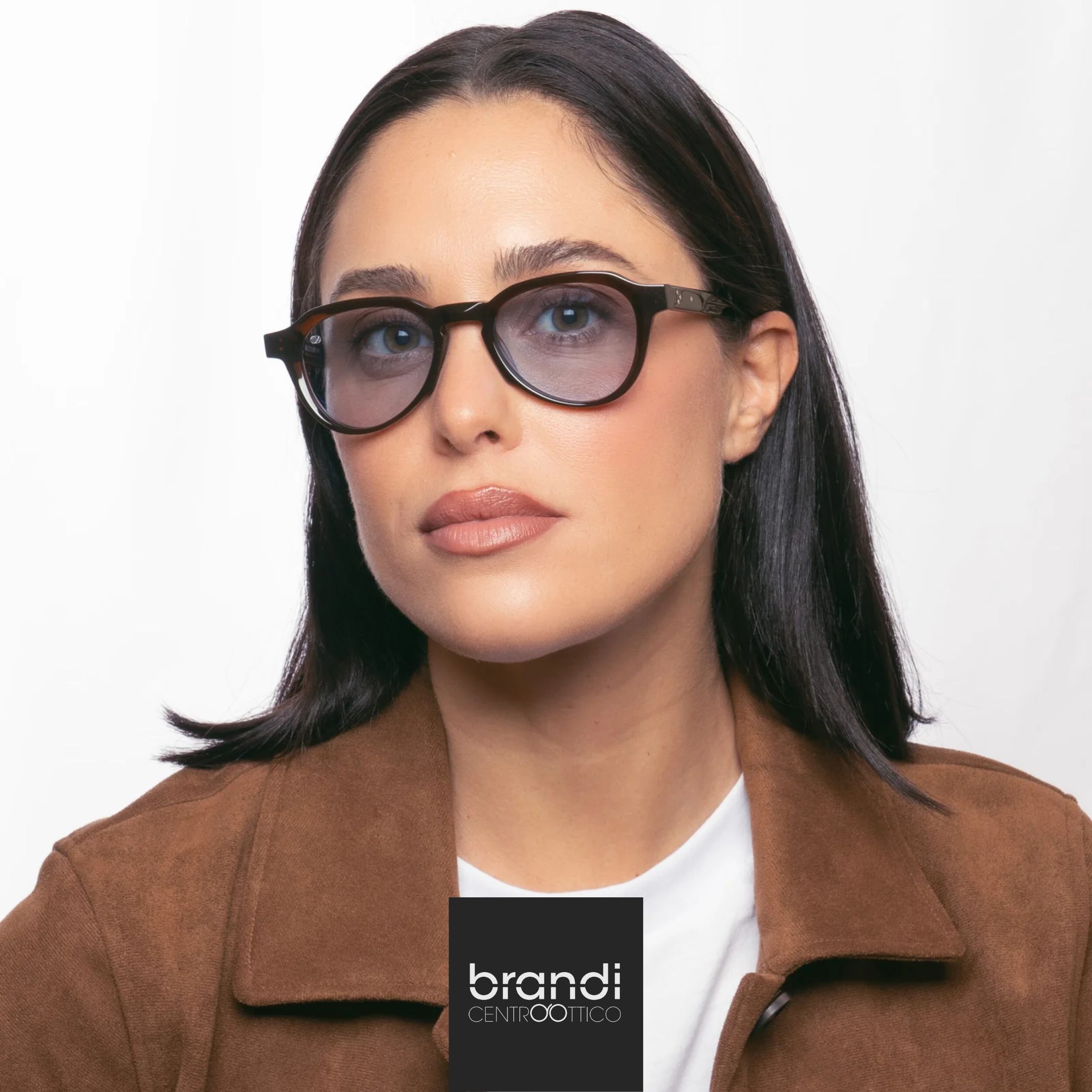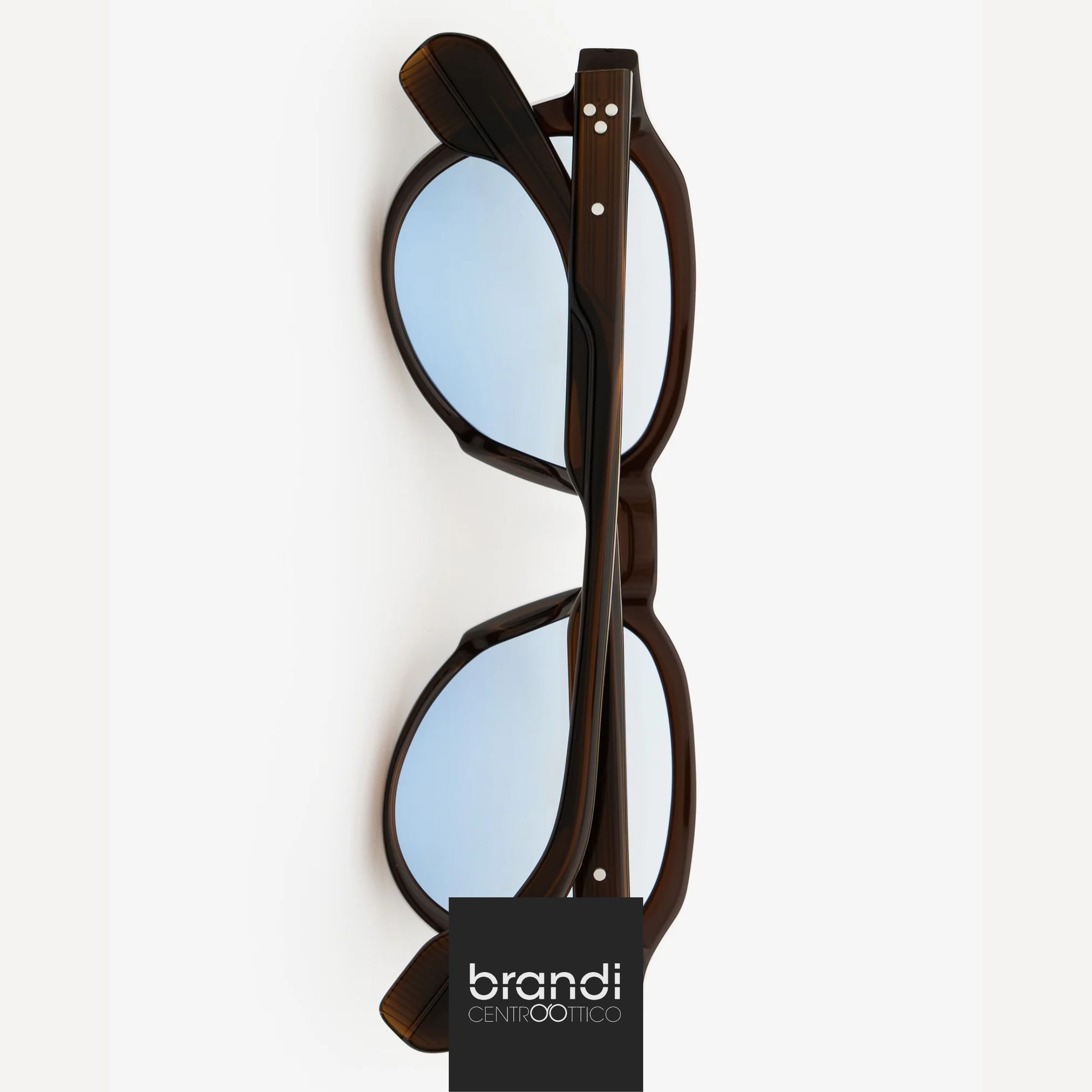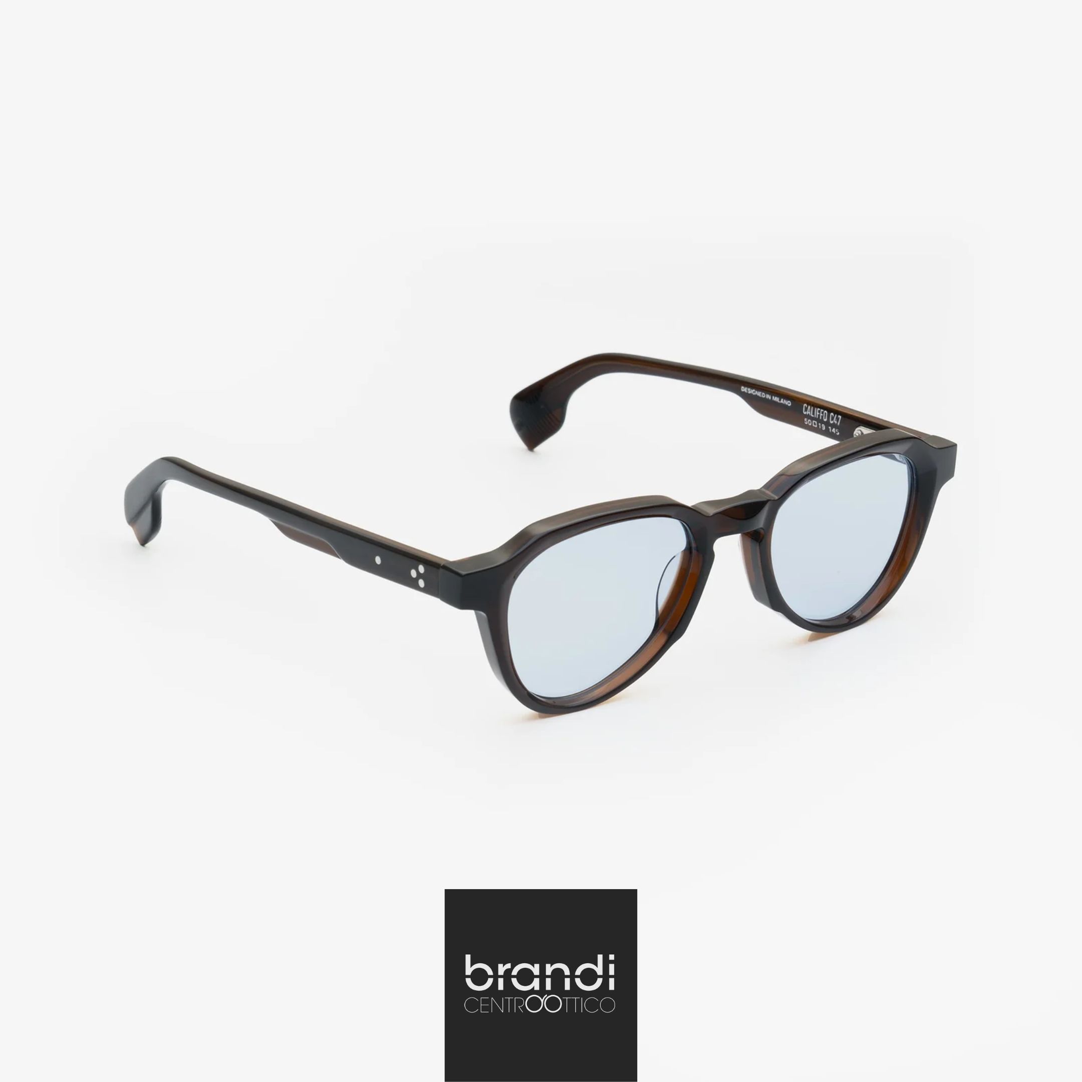 CALIFFO è un occhiale da sole in acetato 8 mm con cerniere personalizzate a 7 snodi e aste in acetato con doppia fresatura. Lenti antiriflesso CR-39 100% protezione UVA-UVB.
